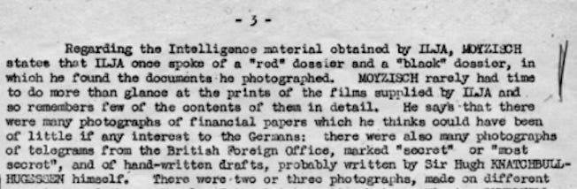 Sur la base de cette nouvelle information, les agents du MI6 mettent la pression sur Moyzisch, alors détenu au camp de prisonnier « 020 », quelque part dans l’ouest de l’Allemagne. Les archives nous révèlent que sous les menaces ou contraintes physiques, Moyzisch finit par craquer et tout dévoiler : ses relations avec Cicéron, les rendez-vous secrets, les documents photographiés, l’argent… Mais Moyzisch ne peut avouer ce qu’il ignore : la véritable identité de Cicéron. Il ne connaît que le diminutif de son prénom : Ilya.