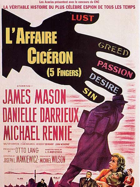 Comme on le sait, après la découverte de l’escroquerie aux fausses livres sterling, Elysea Bazna est redevenu un homme pauvre, harcelé par les créanciers. Il vit d’expédients durant de nombreuses années et, en 1960, décide d’écrire ses Mémoires, comme l’a fait Moyzisch quelques années auparavant. Mais notre homme n’est pas écrivain. Il fait donc appel à un journaliste allemand, Hans Nogly, afin de l’aider à rédiger ses souvenirs. Avant de se mettre au travail, Nogly souhaite s’assurer qu’il n’a pas affaire à un escroc mais bien au véritable Cicéron, le plus grand espion de la Seconde Guerre mondiale. Car depuis 1952, ce nom est passé à la postérité grâce à la sortie du film de Joseph Mankiewicz, Five Fingers (l’Affaire Cicéron), avec James Mason et Danielle Darrieux dans les rôles principaux, librement inspiré du récit littéraire de Ludwig Moyzisch. À l’époque, Bazna avait même essayé de se faire embaucher par le réalisateur, sans succès ; Mankiewicz prétextant qu’il était bien moins intéressé par les faits réels que par la puissance romanesque de l’histoire…
